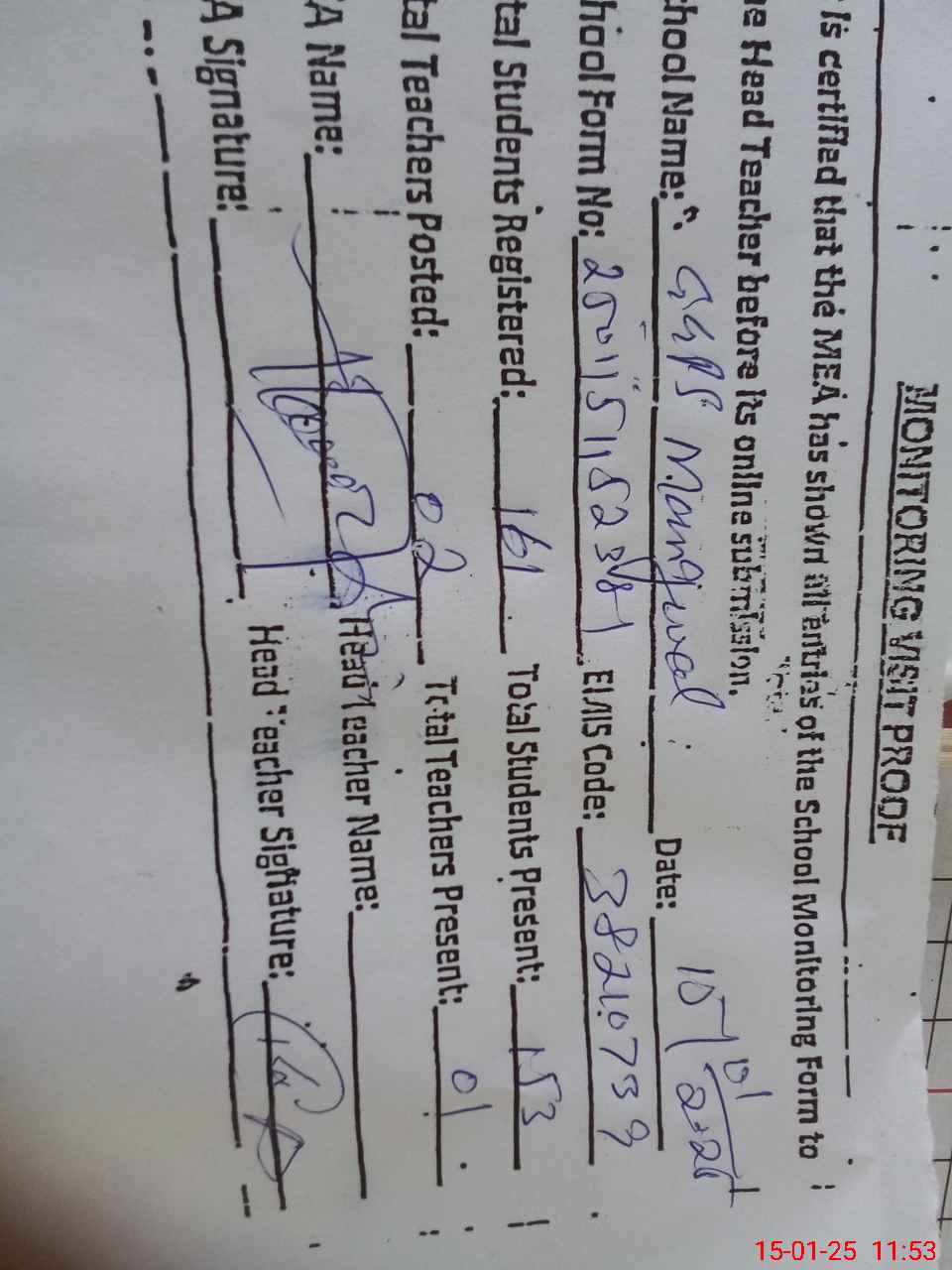 | EMIS Code: 38210739 | Name of School: GGPS MANGWAL | |||