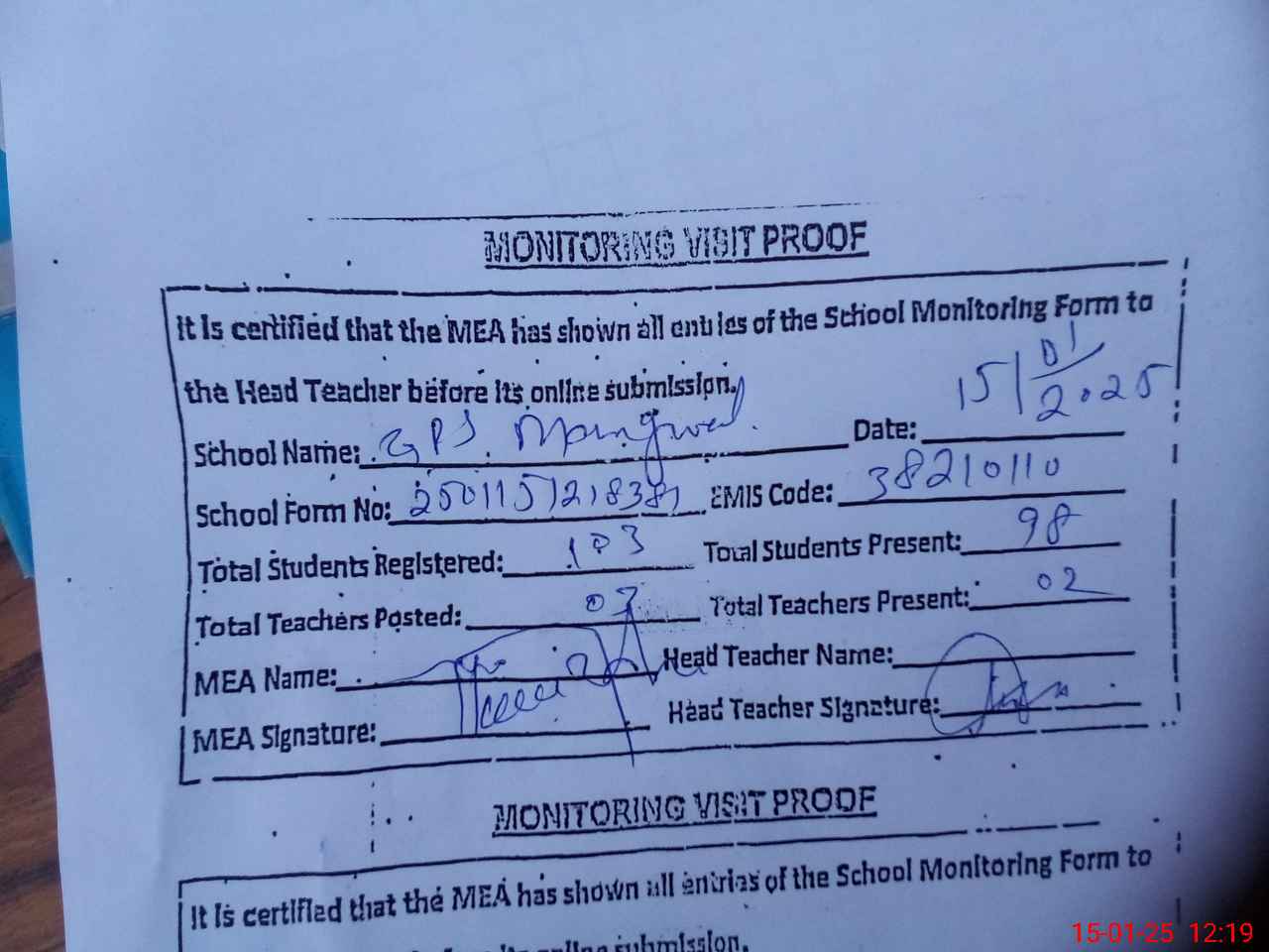 | EMIS Code: 38210110 | Name of School: GPS MANGWAL | |||