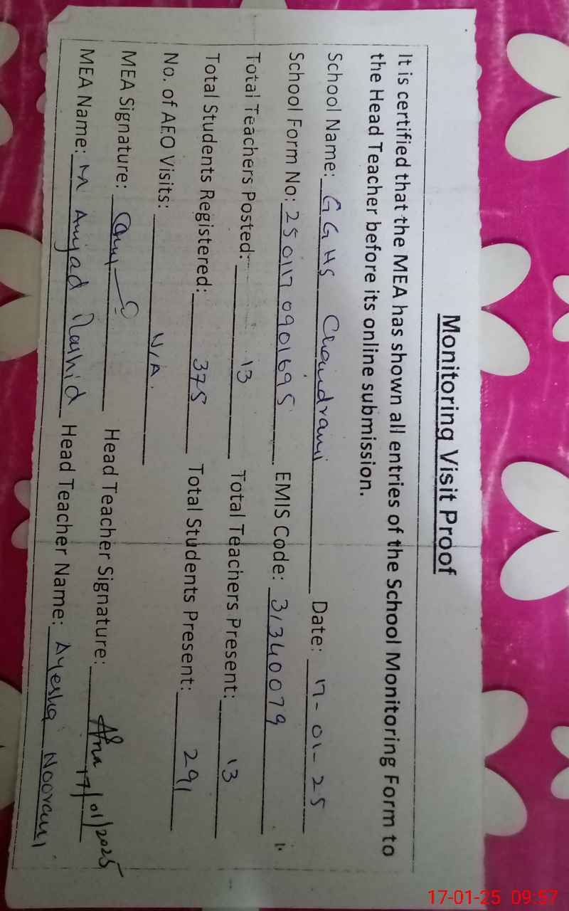 | EMIS Code: 31340079 | Name of School: GGHS CHAND RAMI | |||