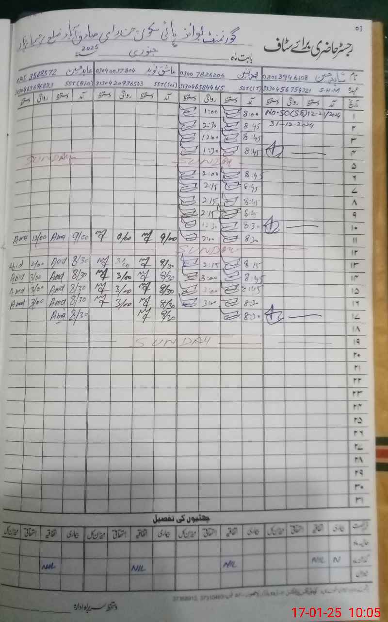 | CNIC | Full Name | Designation | R/C | Absence During Last Calender Month |