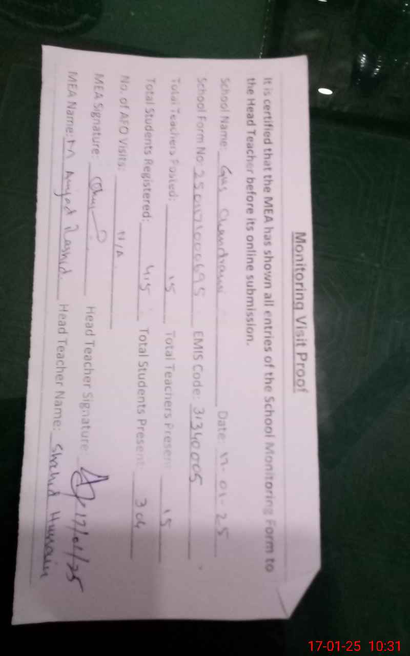| Attendance Register | Head Teacher | MEA with School | Visit Proof |