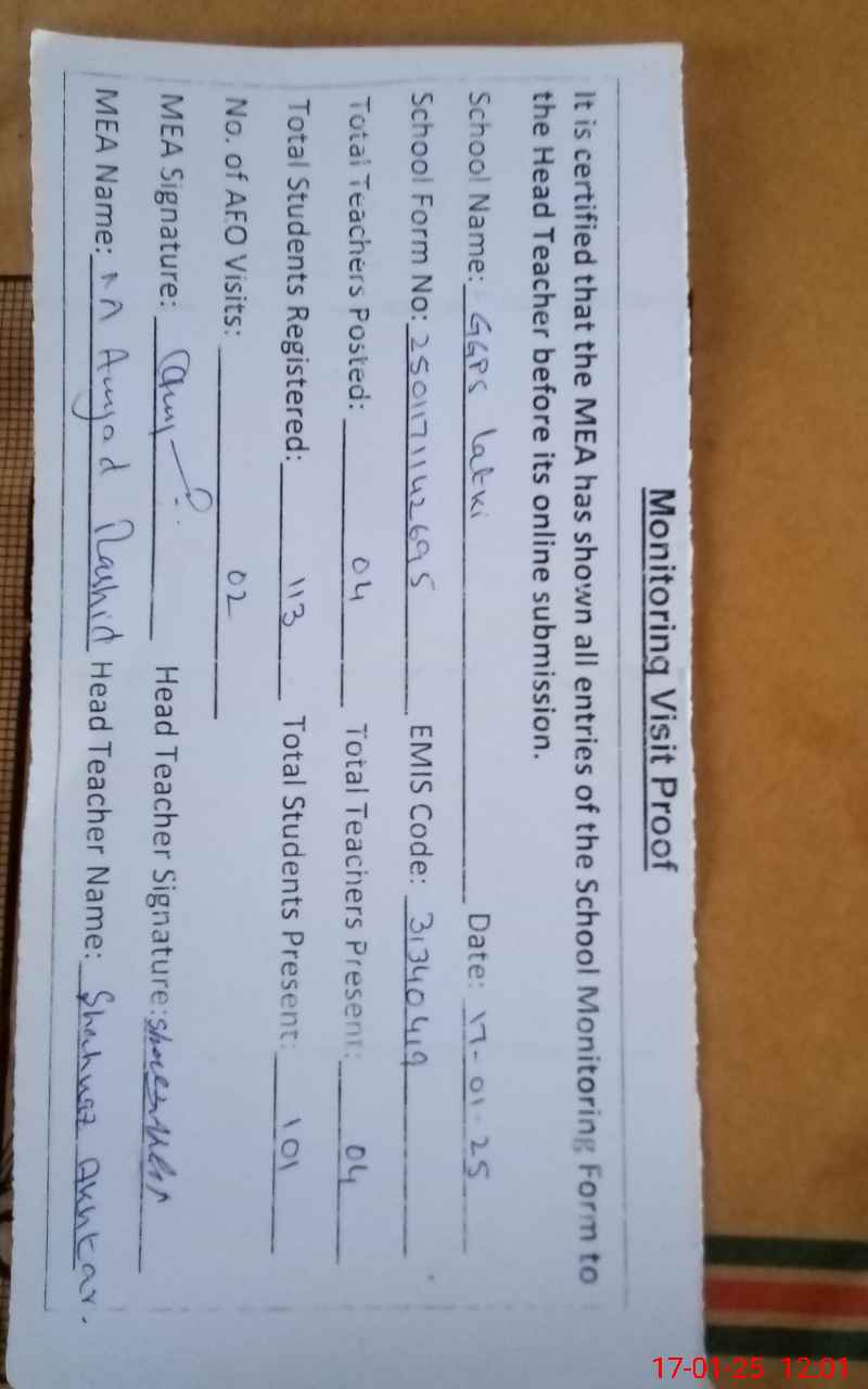 | EMIS Code: 31340419 | Name of School: GGPS LATKI | |||