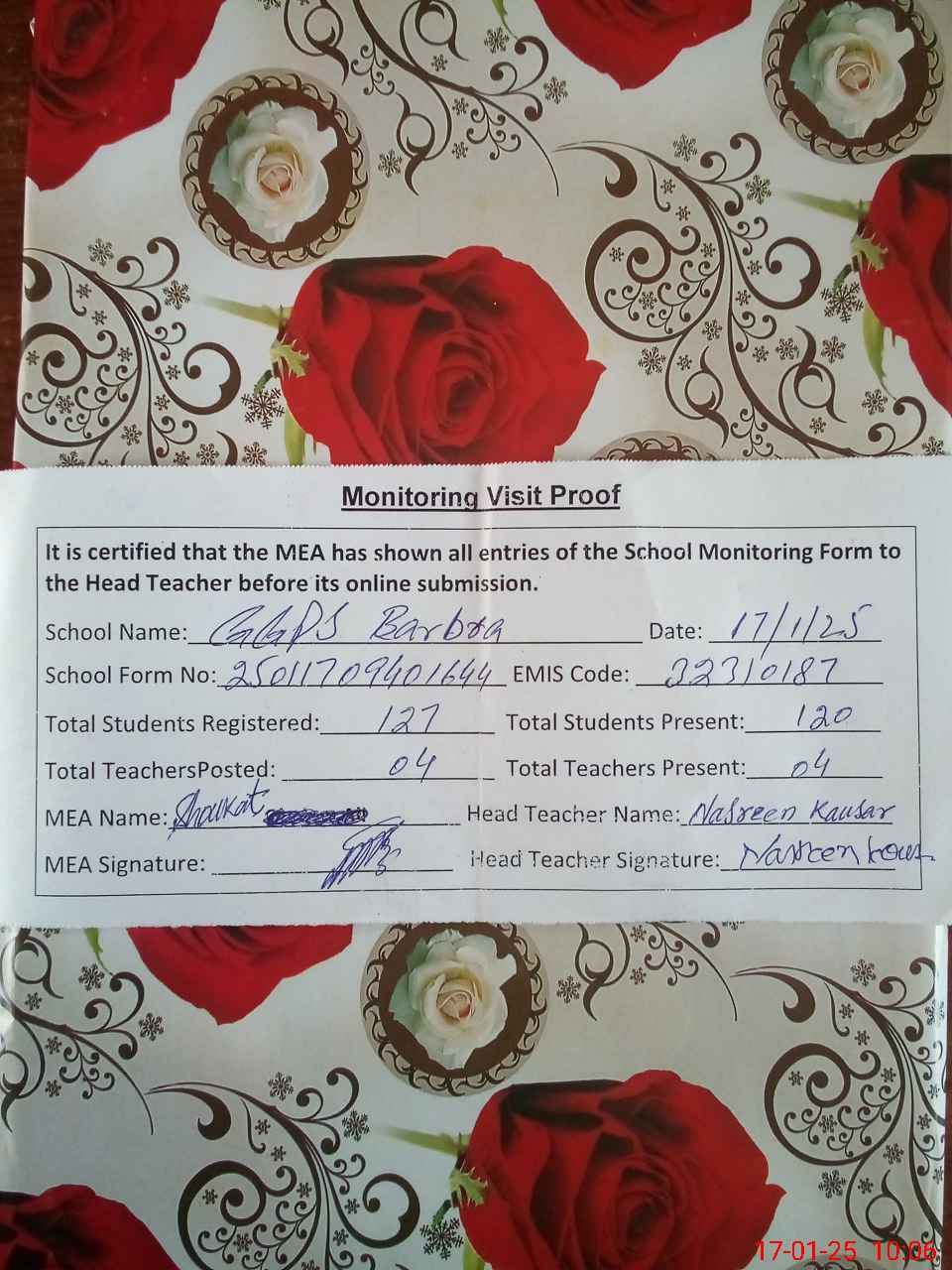 | EMIS Code: 32310187 | Name of School: GGPS BASTI BARBRA | |||