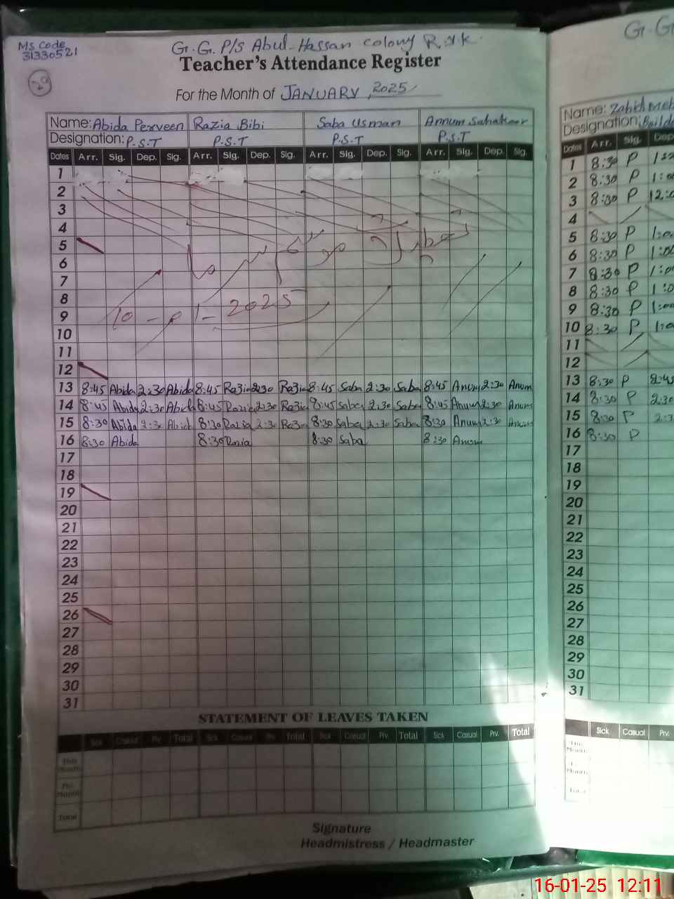 | EMIS Code: 31330521 | Name of School: GGPS ABUL HASSAN COLONY | |||