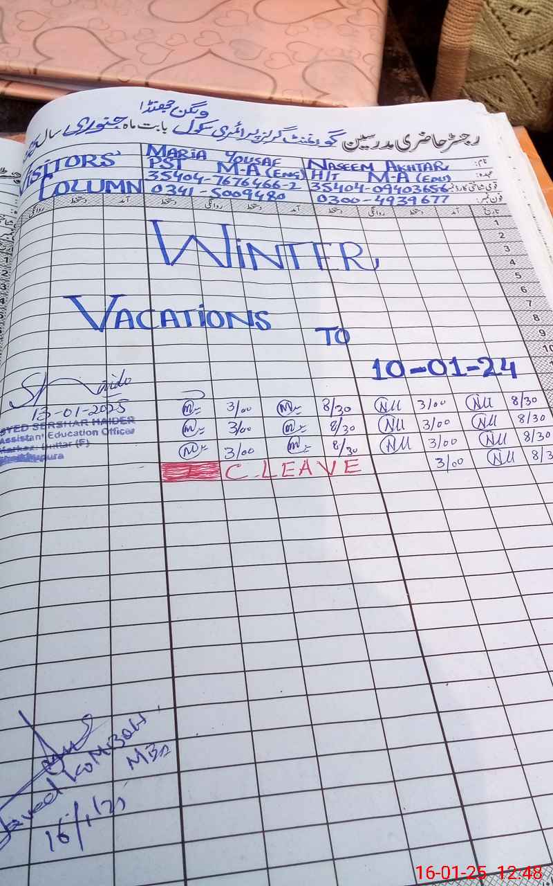 | Name: NA**** AK**** Designation: (School Headmaster's/Headmistress's) PST Phone/Cell Number: 03**** |