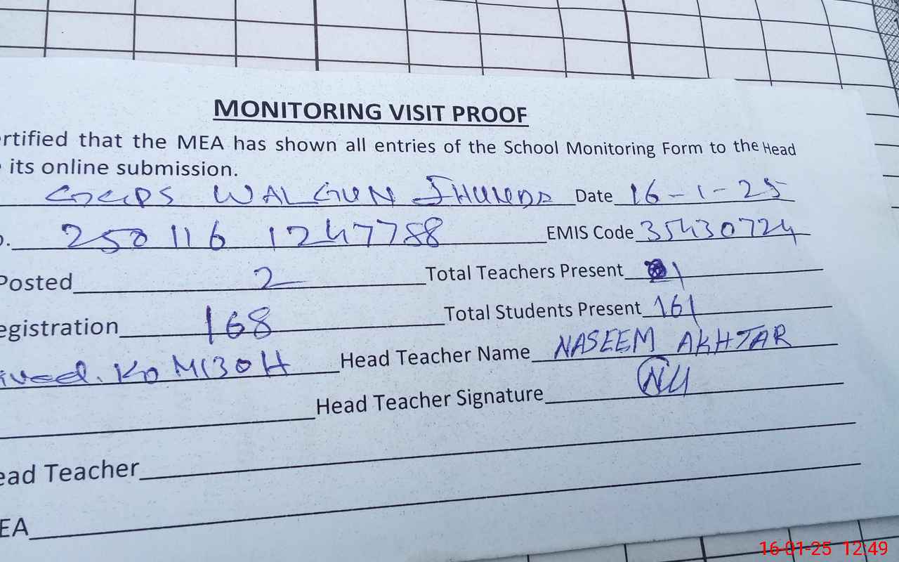 | Attendance Register | Head Teacher | MEA with School | Visit Proof |