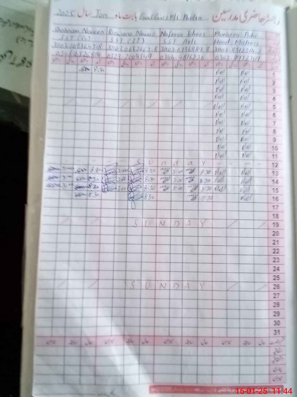 | Name: Mu**** BiBi Designation: (School Headmaster's/Headmistress's) H M Phone/Cell Number: 03**** |