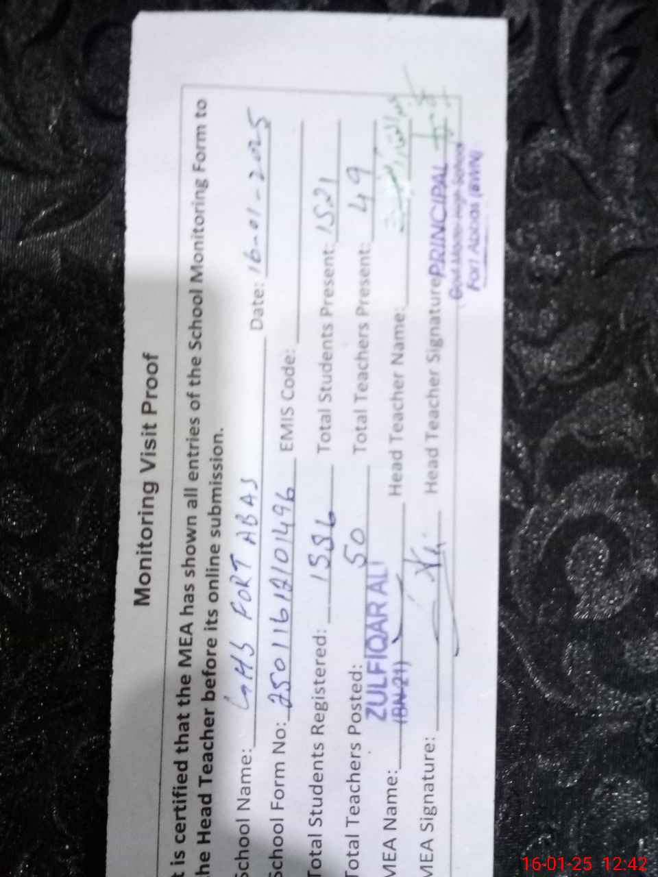 | EMIS Code: 31130001 | Name of School: GHS FORT ABBAS | |||