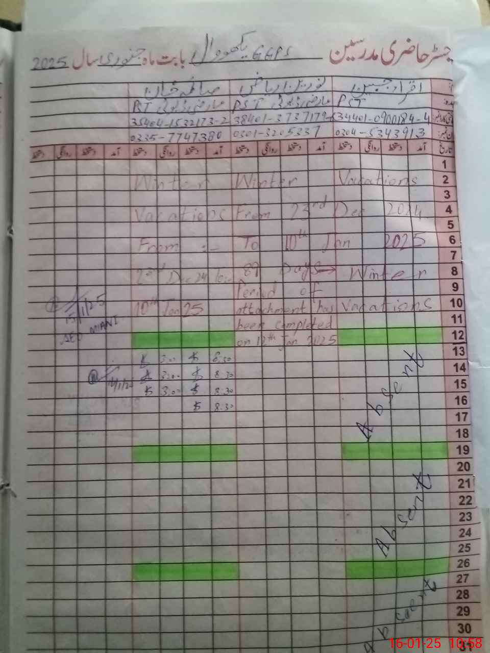| Name: A Designation: (School Headmaster's/Headmistress's) PST Phone/Cell Number: 03**** |
