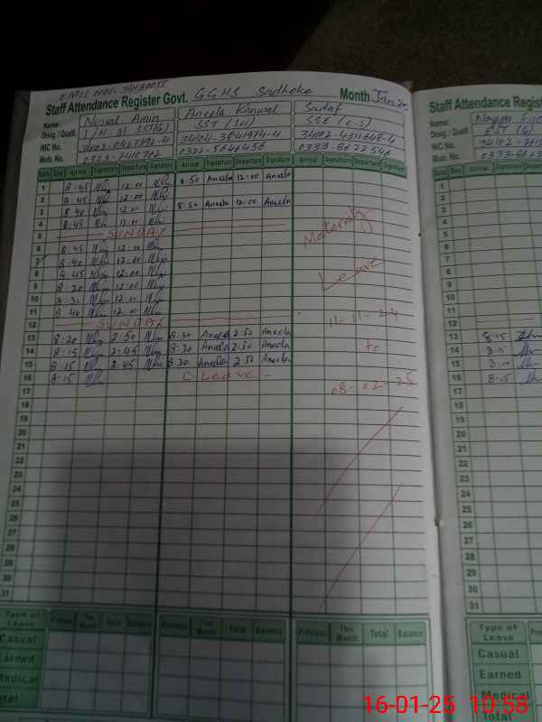 | CNIC | Full Name | Designation | R/C | Absence During Last Calender Month |