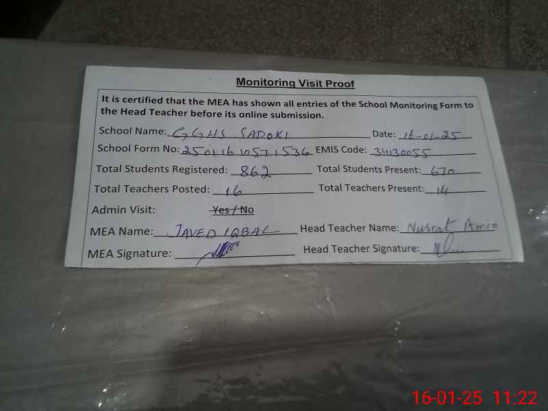 | Certified that this School was Inspected by the Undersigned MEA/DMO Today and the Information Stated Above is as Per Record. | |||||