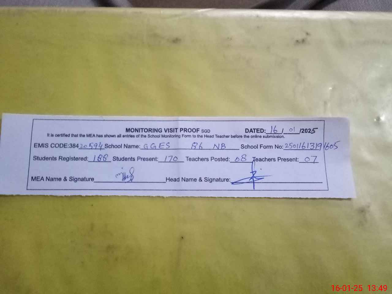| EMIS Code: 38420594 | Name of School: GGES CHAK NO.86 NB | |||