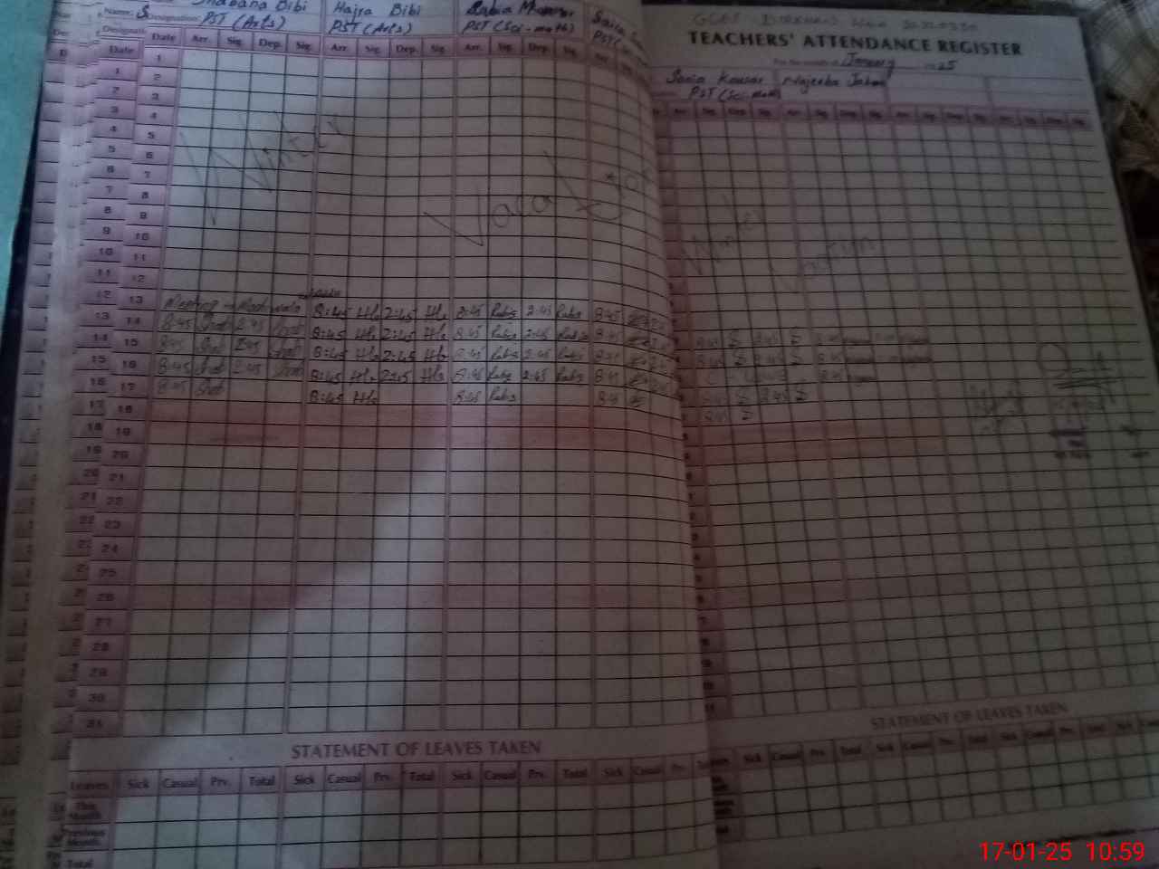 | CNIC | Full Name | Designation | R/C | Absence During Last Calender Month |
