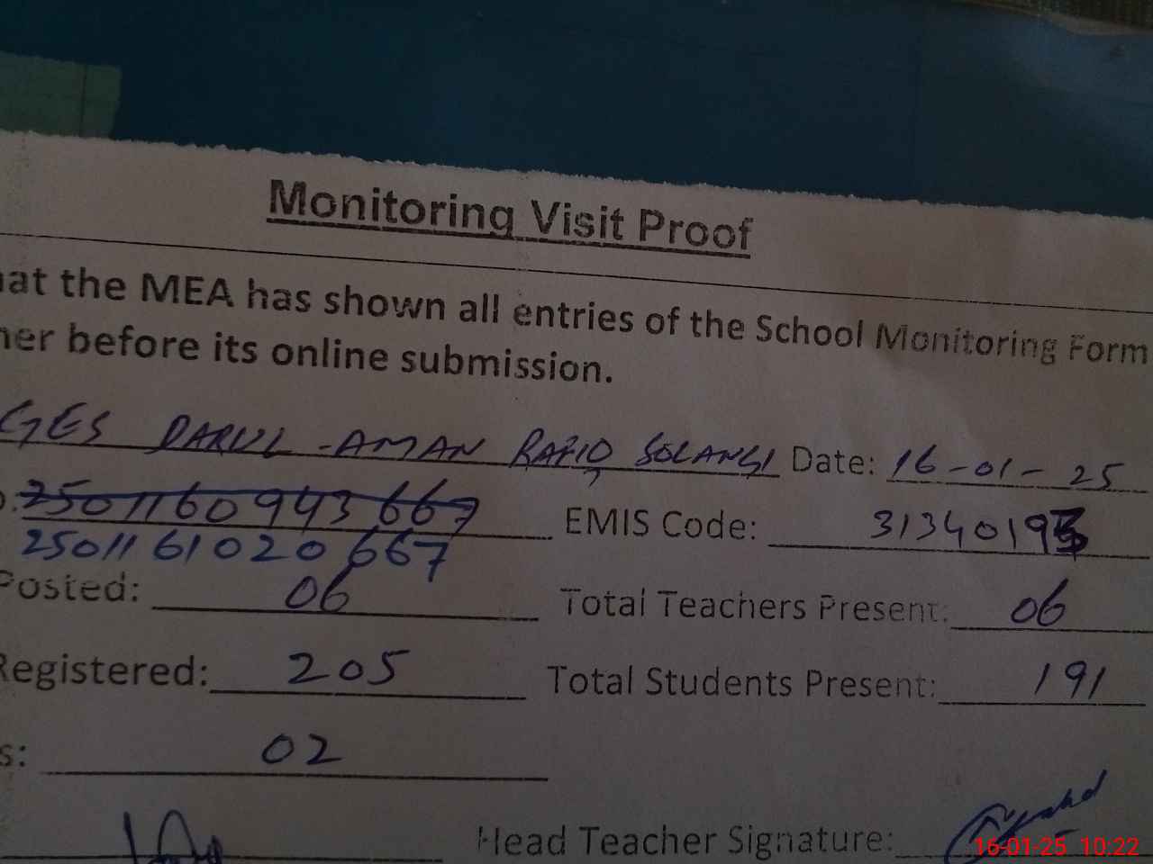 | EMIS Code: 31340193 | Name of School: GES DARUL AMMAN BASTI RAFIQ SOLANGI | |||