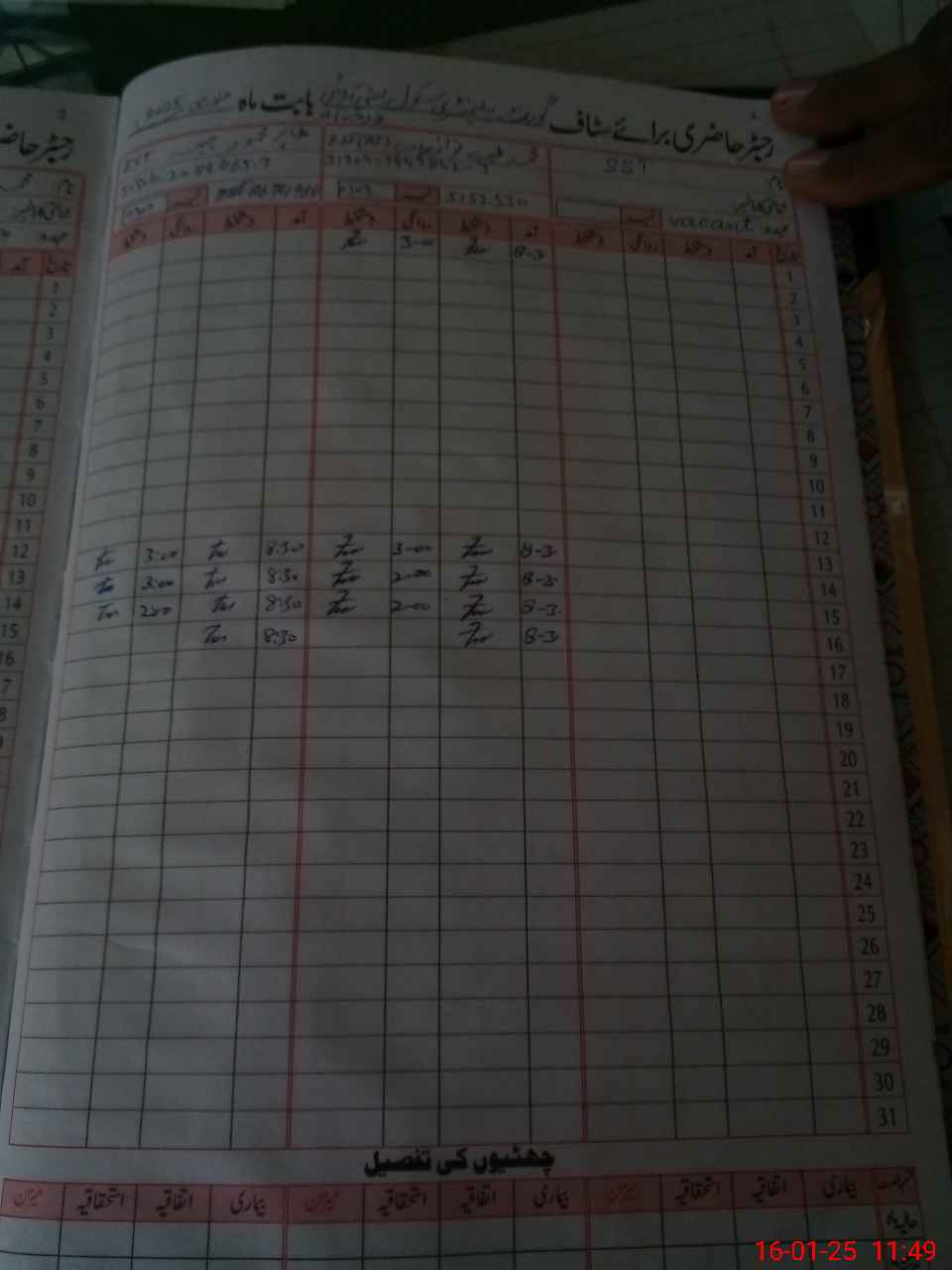 | CNIC | Full Name | Designation | R/C | Absence During Last Calender Month |