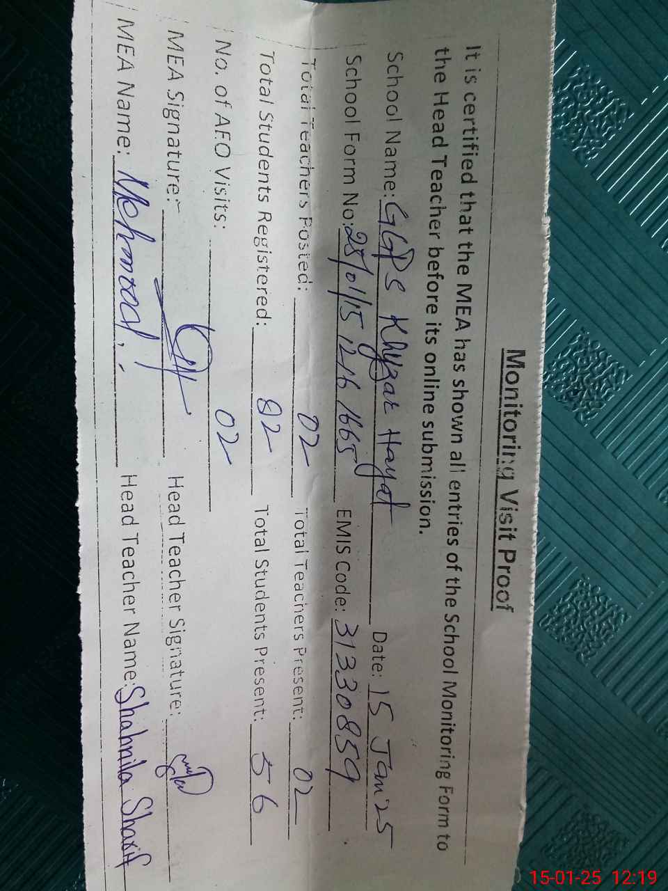 | EMIS Code: 31330859 | Name of School: GGPS KHYZER HAYAT | |||