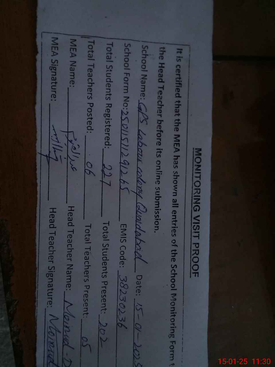 | EMIS Code: 38230236 | Name of School: GPS LABOUR COLONY | |||