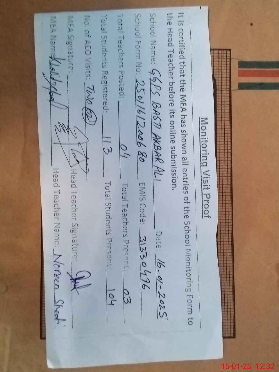 | EMIS Code: 31330496 | Name of School: GGPS BASTI AKBAR ALI | |||