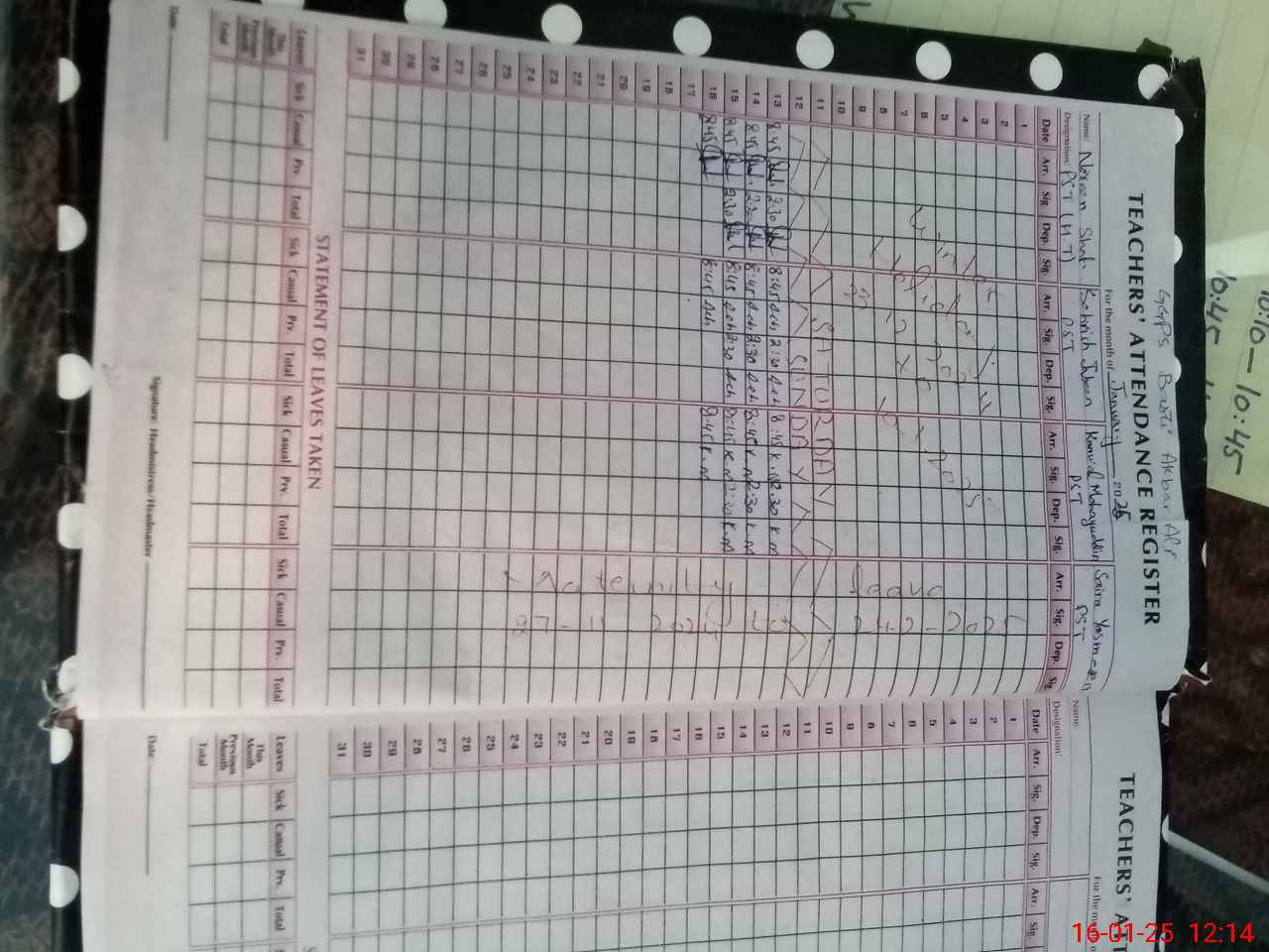 | Remarks (Use Separate Page if Required): Class verification is not updated on mea tab as per sis and teachers attendance not updated on sis today and two classes are sitting in veranda | |||||
