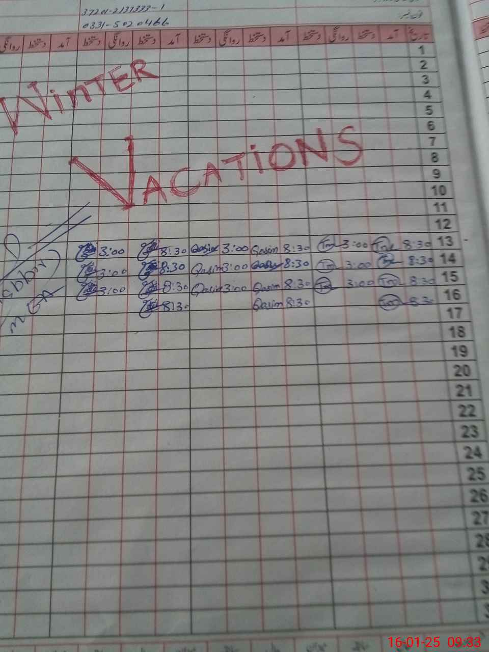 | CNIC | Full Name | Designation | R/C | Absence During Last Calender Month |