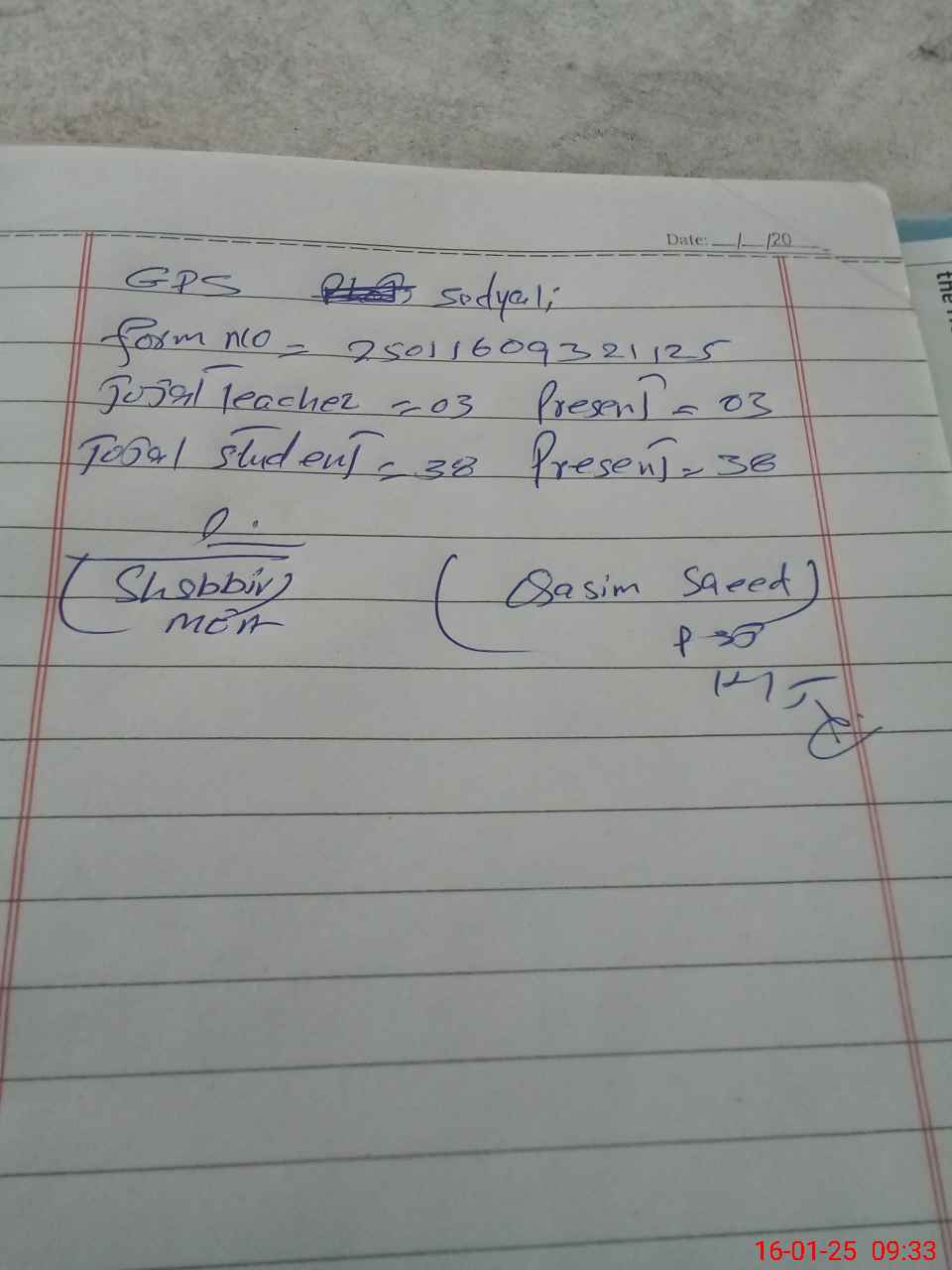 | Attendance Register | Head Teacher | MEA with School | Visit Proof |