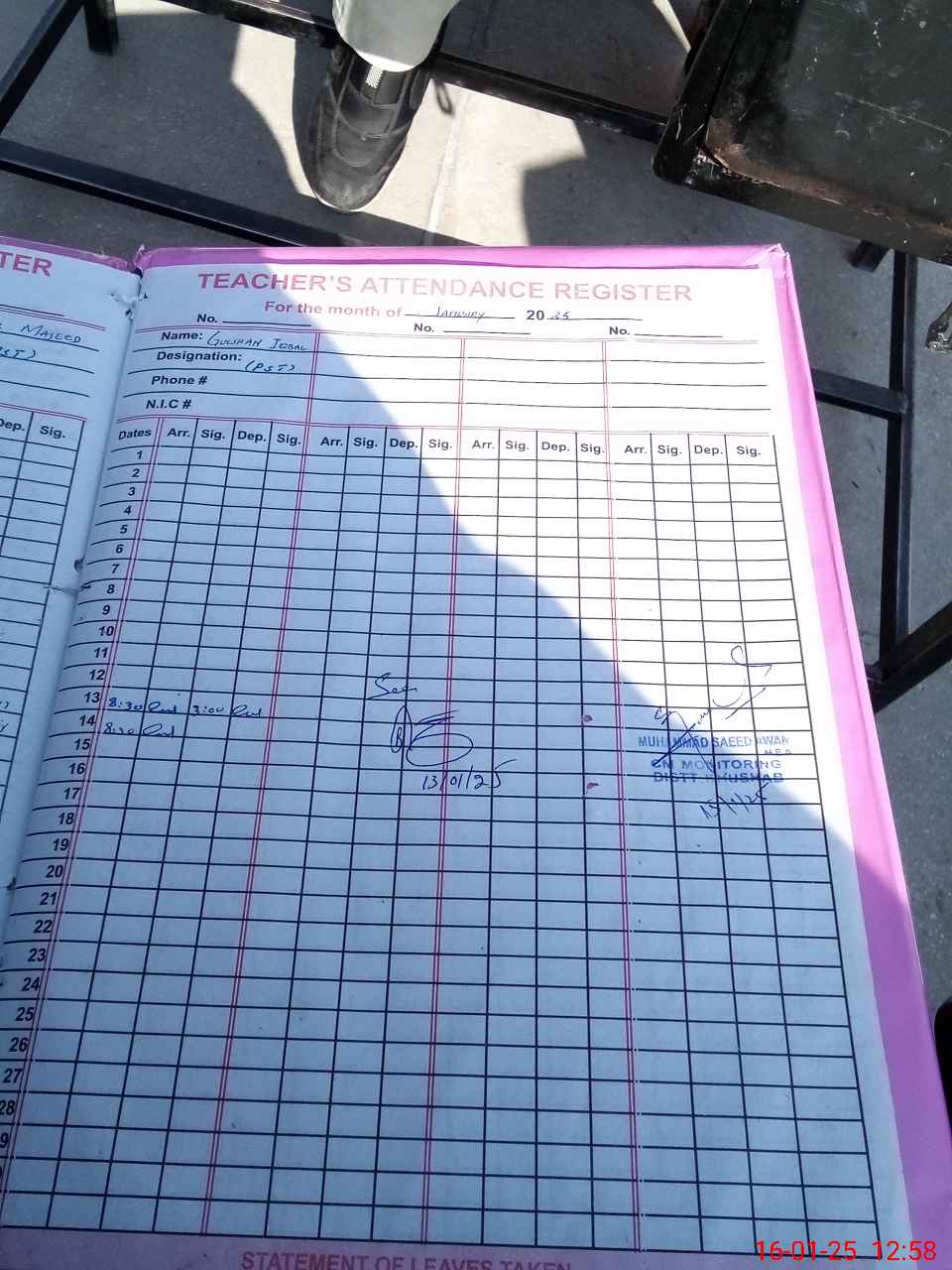 | Name: Mu**** Na**** Designation: (School Headmaster's/Headmistress's) PST Phone/Cell Number: 03**** |