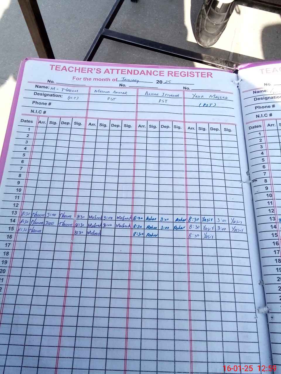 | CNIC | Full Name | Designation | R/C | Absence during last cal. month |