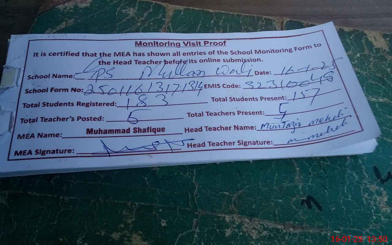 | EMIS Code: 32310048 | Name of School: GPS MULLAN WALI JADEED | |||