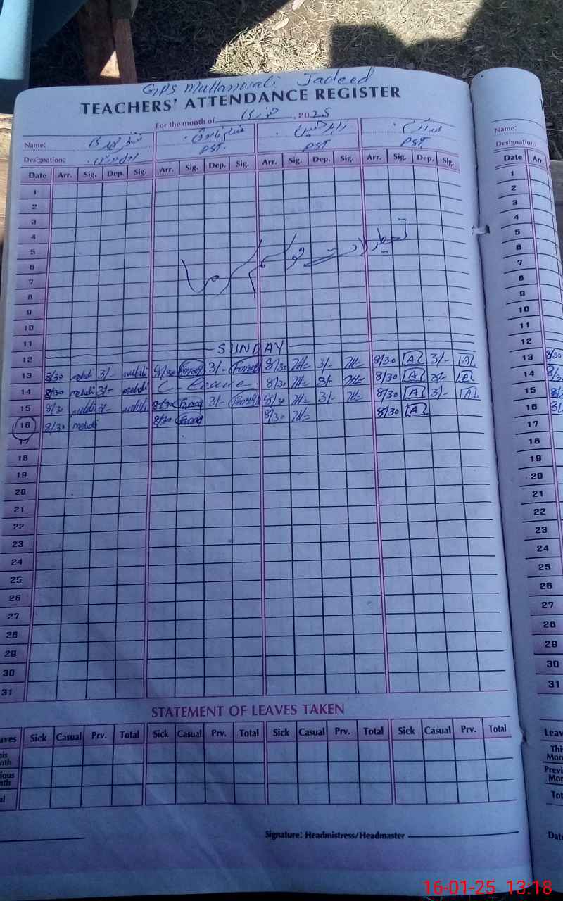 | Name: FI**** AH**** Designation: (School Headmaster's/Headmistress's) PST Phone/Cell Number: 03**** |