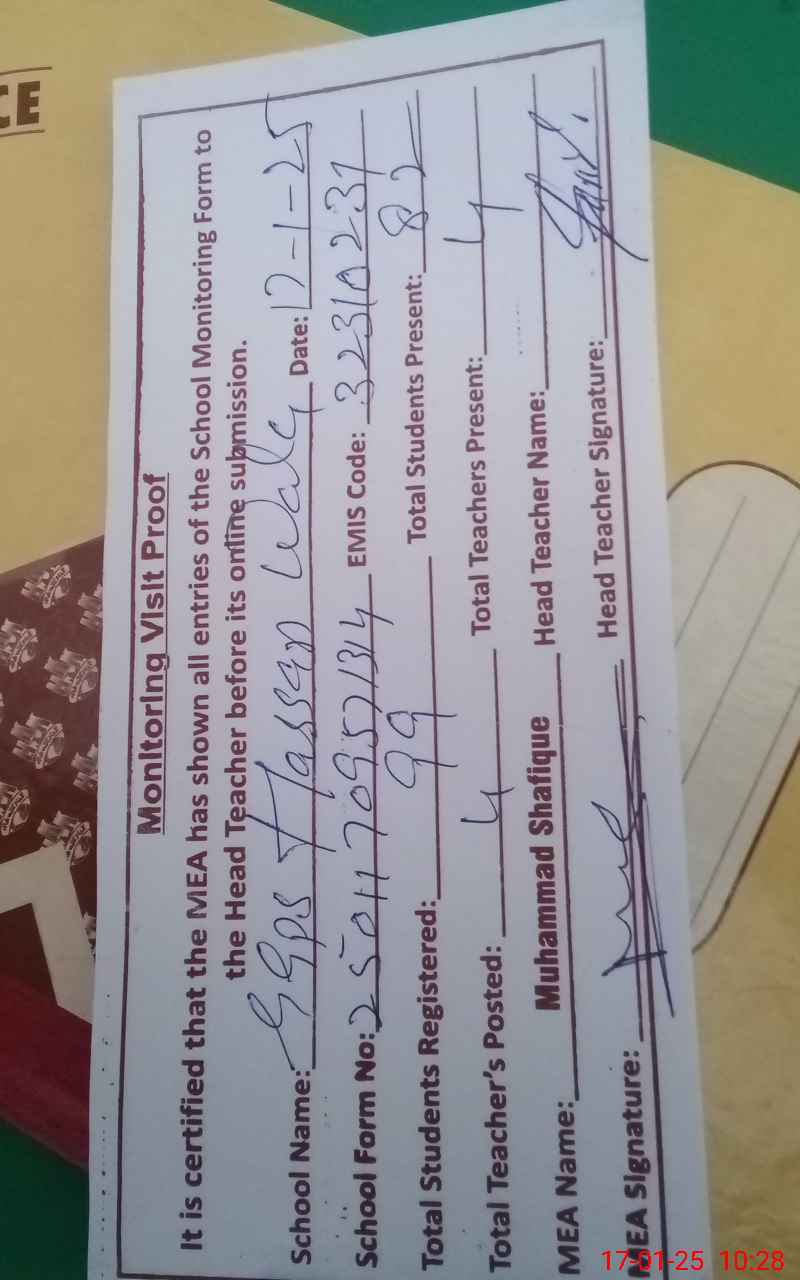 | EMIS Code: 32310231 | Name of School: GGPS HASSAN WALA | |||