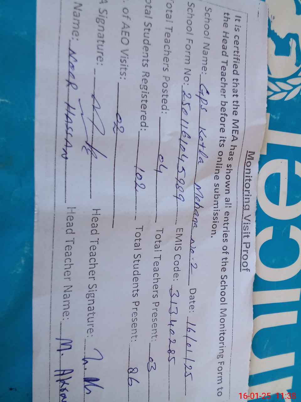 | EMIS Code: 31340285 | Name of School: GPS KOTLA MOHANA NO. 2 | |||