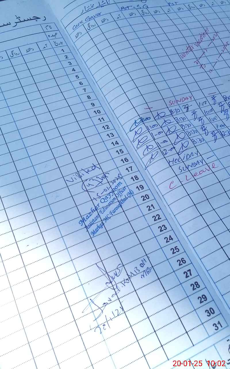 | CNIC | Full Name | Designation | R/C | Absence During Last Calender Month |