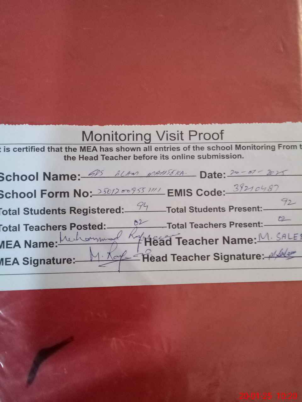 | EMIS Code: 39210487 | Name of School: GPS ALAM MEHTEKA PO PAKPATTAN | |||