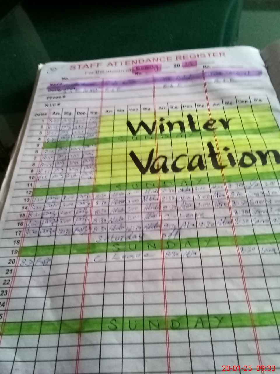 | CNIC | Full Name | Designation | R/C | Absence During Last Calender Month |