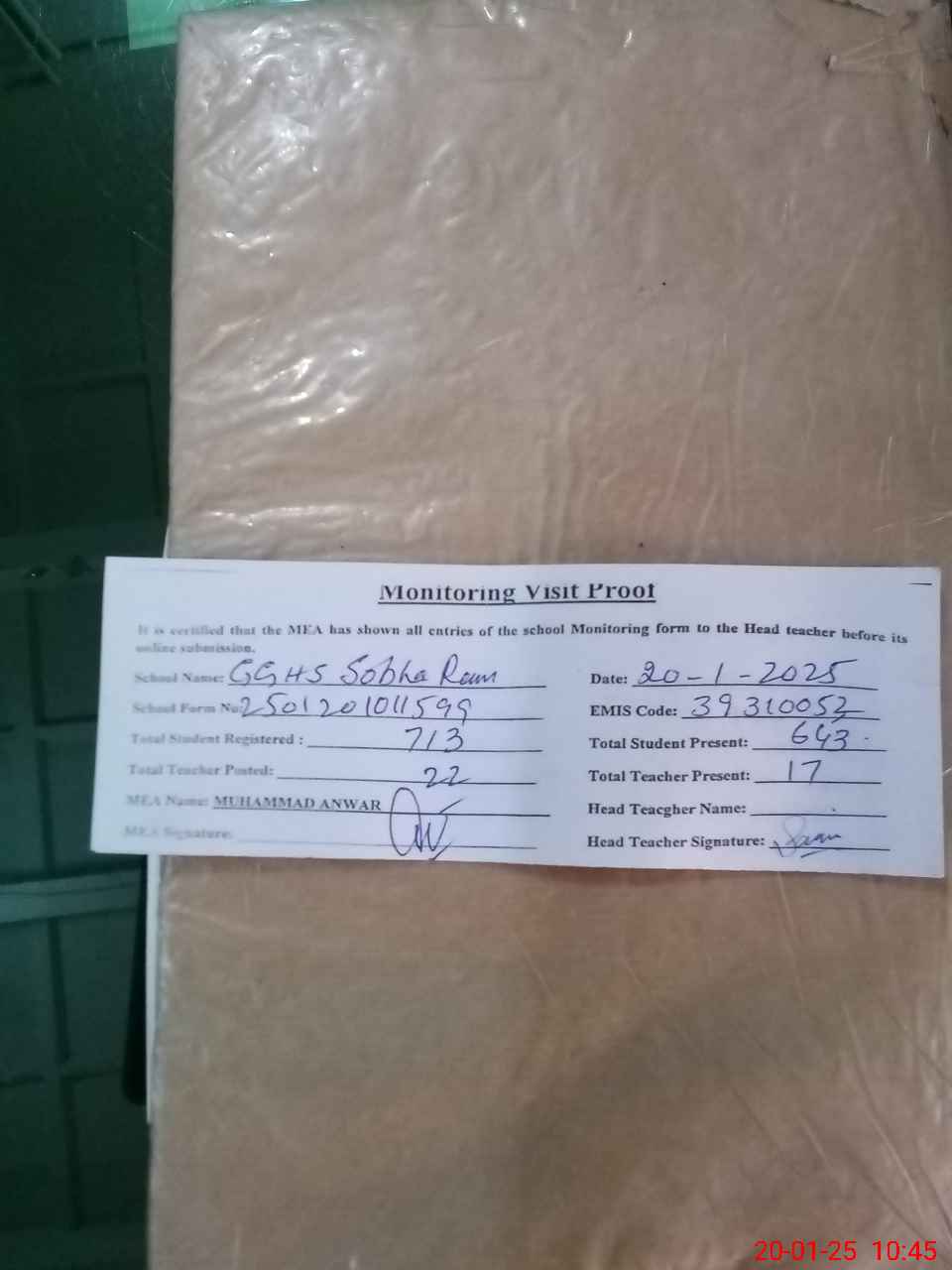 | EMIS Code: 39310053 | Name of School: GGHS SOBHA RAM | |||