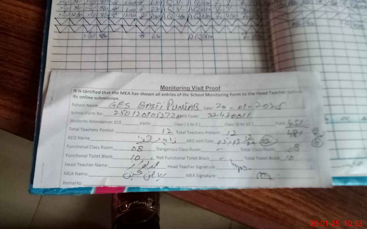 | EMIS Code: 32430011 | Name of School: GES BASTI PUNJAB | |||