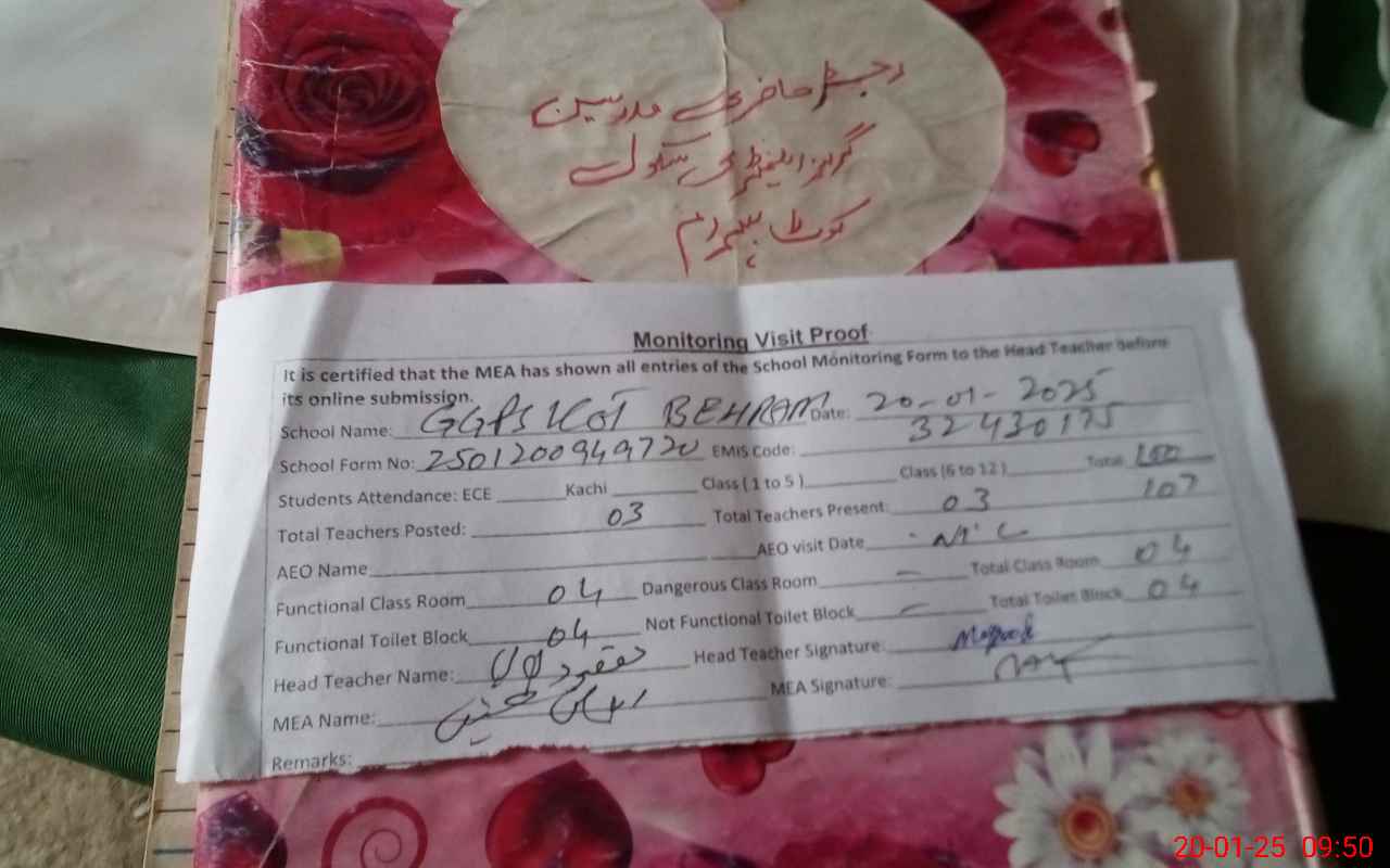 | EMIS Code: 32430175 | Name of School: GGPS KOT BEHRAM | |||