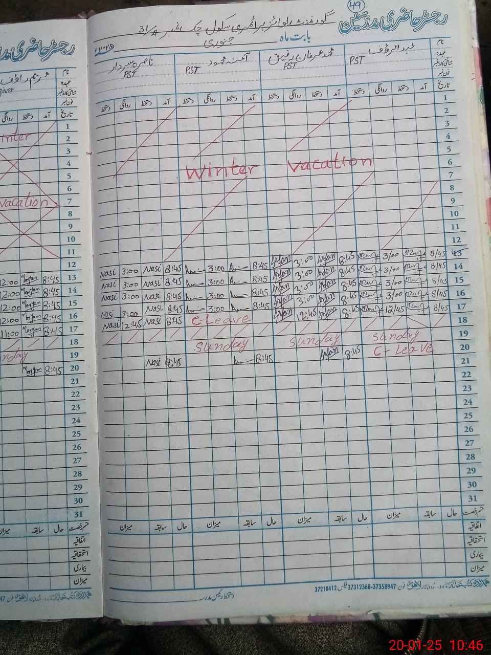 | Name: Mu**** Ir**** Ra**** Designation: (School Headmaster's/Headmistress's) PST Phone/Cell Number: 03**** |