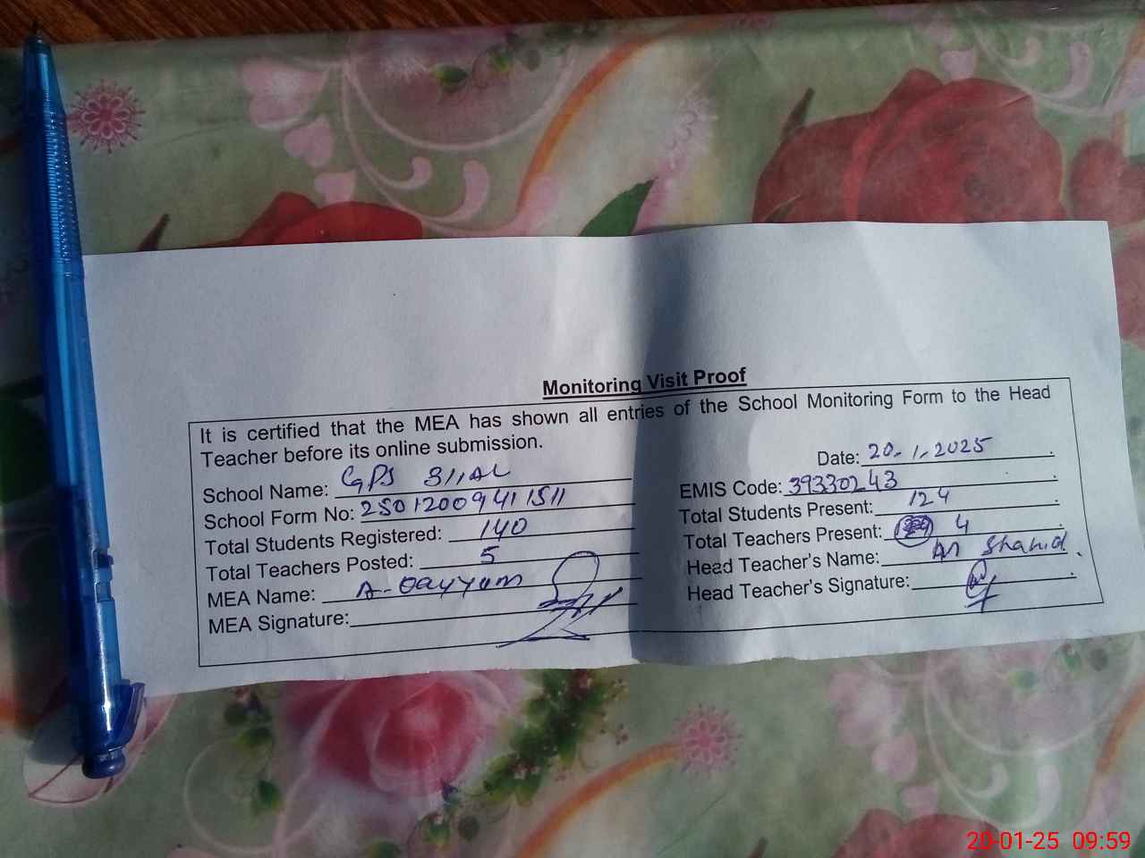 | EMIS Code: 39330243 | Name of School: GPS CHAK 3/1-AL | |||