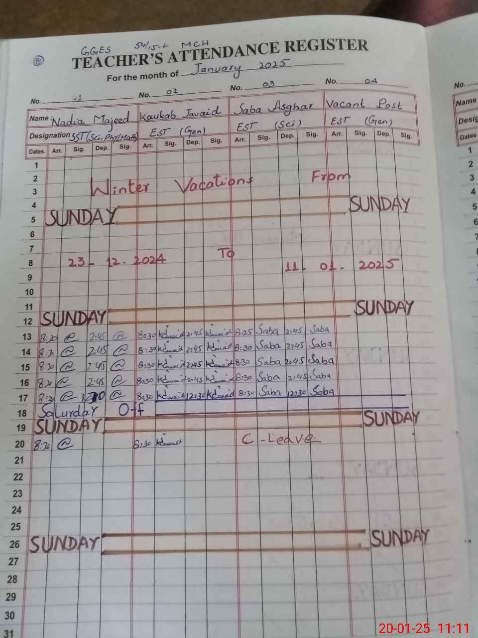 | CNIC | Full Name | Designation | R/C | Absence During Last Calender Month |