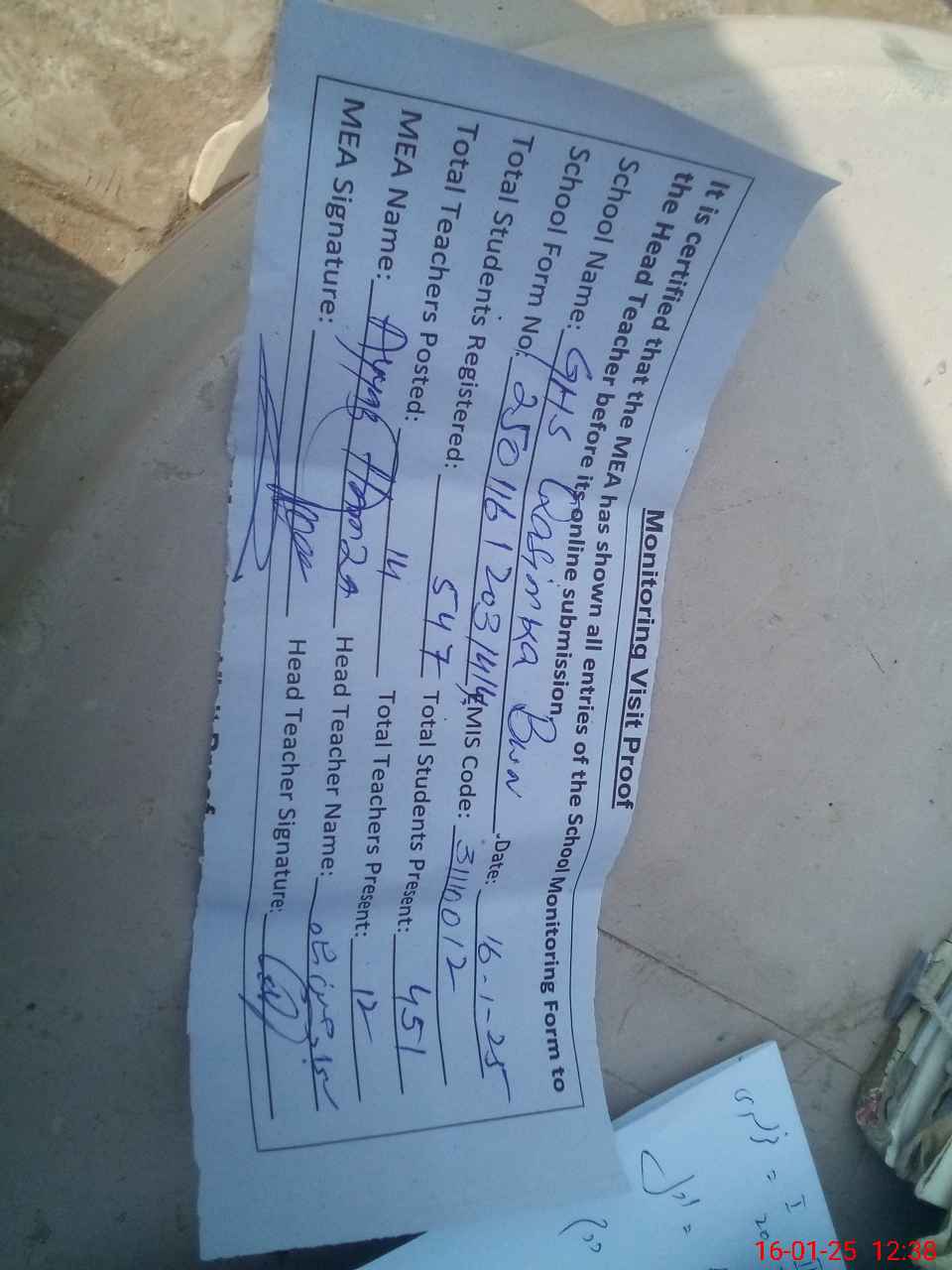 | EMIS Code: 31110012 | Name of School: GHS QASIMKA | |||