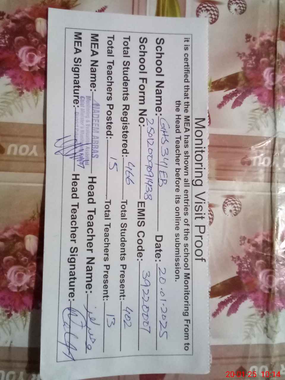 | EMIS Code: 39220007 | Name of School: GHS 34 EB ARIF WALA | |||
