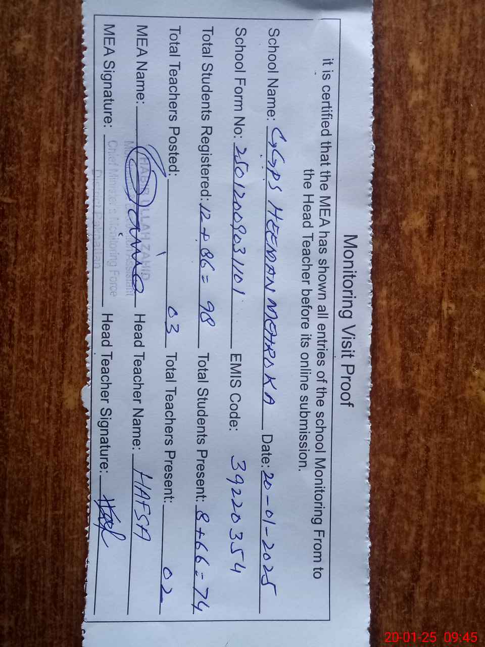 | EMIS Code: 39220354 | Name of School: GGPS HEEMAN MEHROOKA | |||