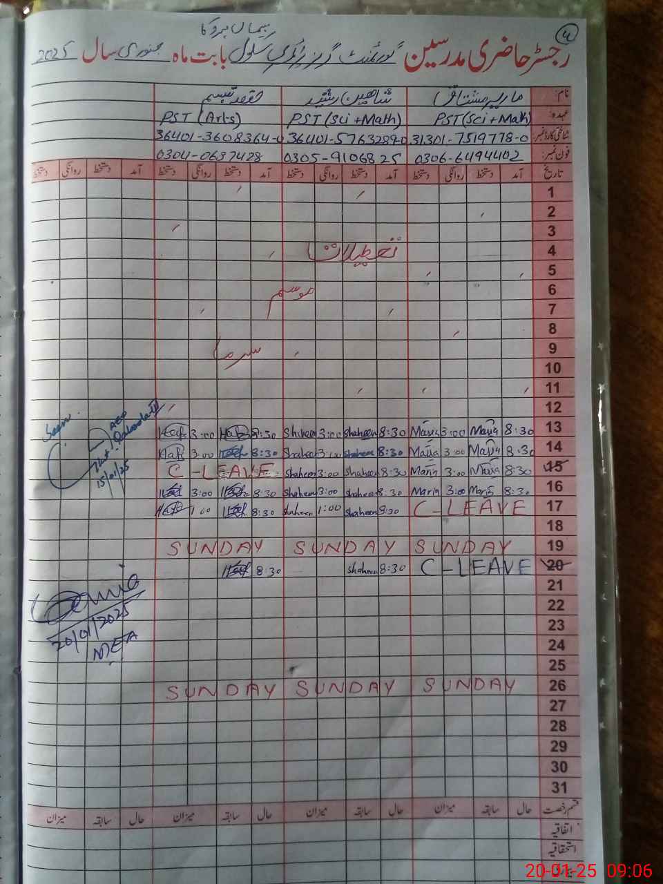 | 31**** | Ma**** Mu**** | ESE | Contract | 0 | 0 | 0 | 0 | 0 | 0 | 0 | 0 | 0 | Casual |