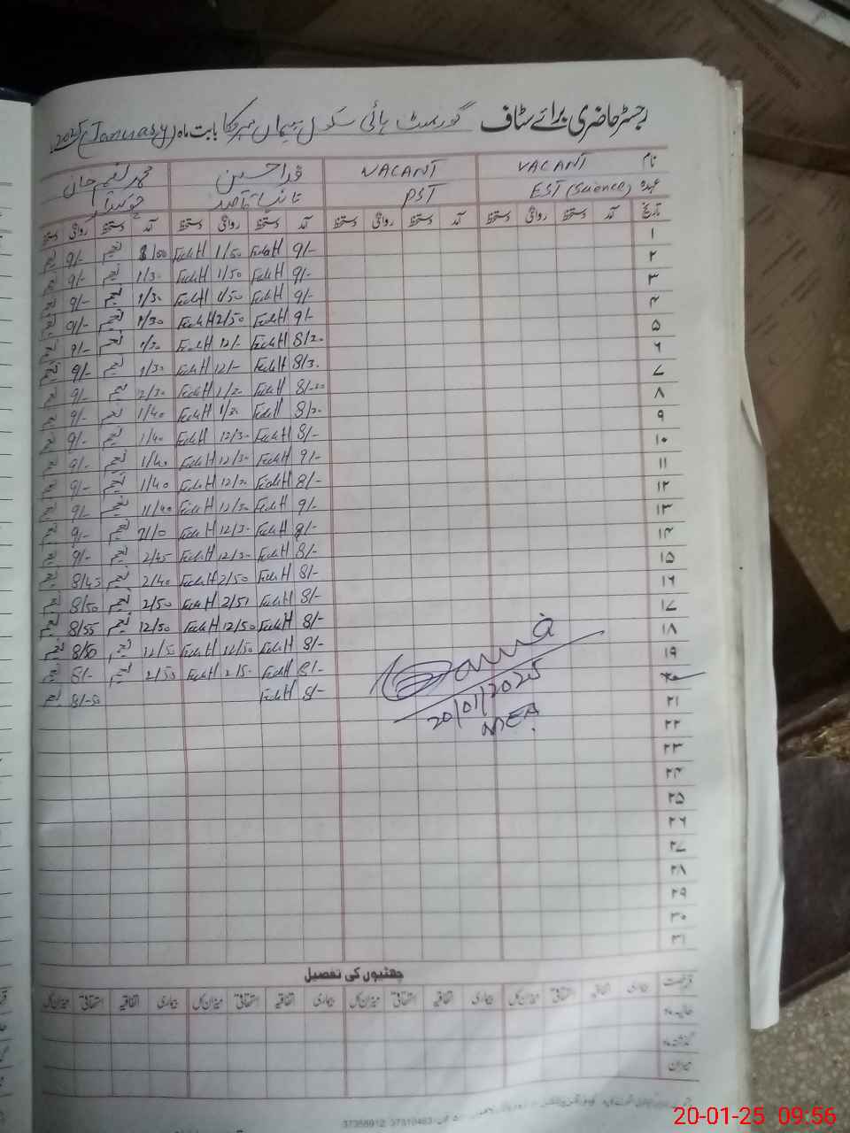 | CNIC | Full Name | Designation | R/C | Absence During Last Calender Month |