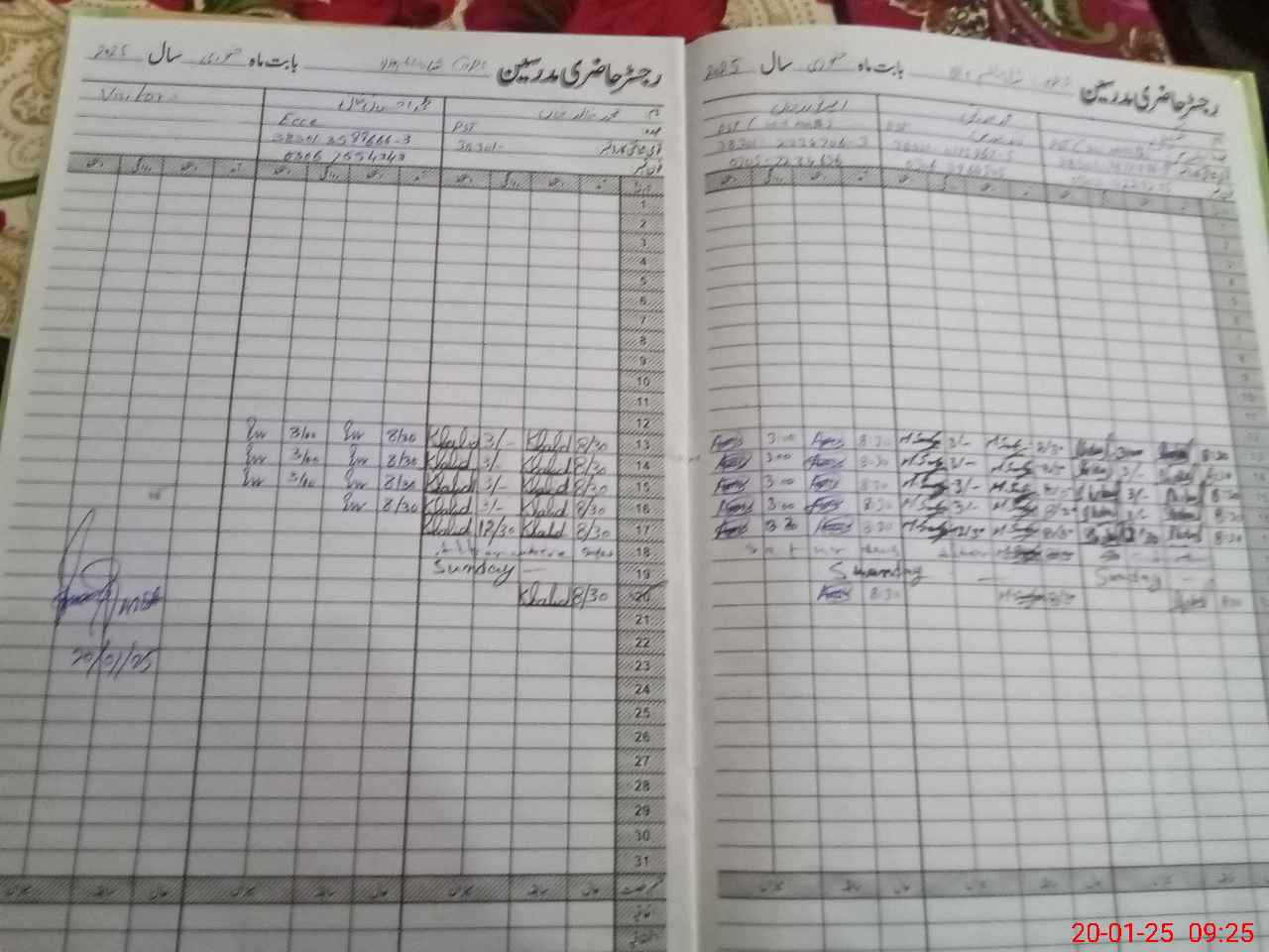 | CNIC | Full Name | Designation | R/C | Absence During Last Calender Month |