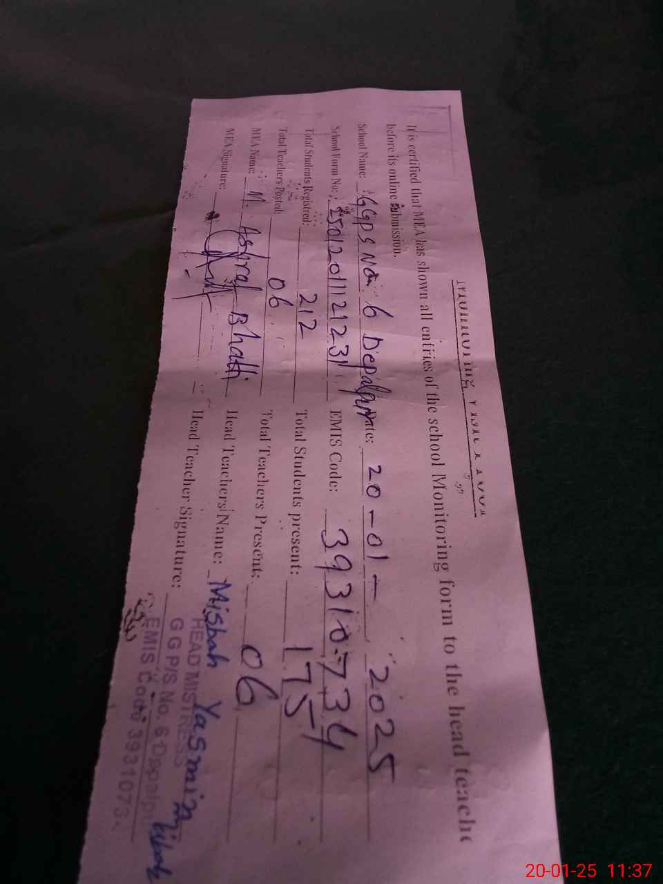 | EMIS Code: 39310734 | Name of School: GGPS NO.6 DEPALPUR | |||