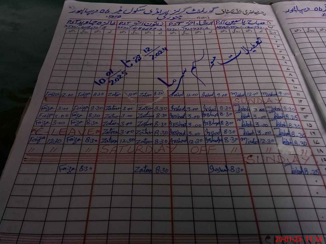 | CNIC | Full Name | Designation | R/C | Absence During Last Calender Month |