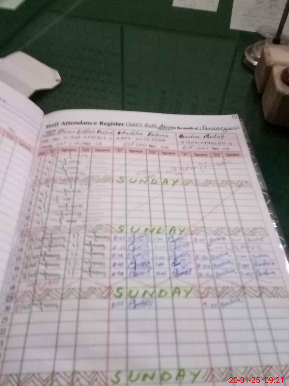 | CNIC | Full Name | Designation | R/C | Absence during last cal. month |