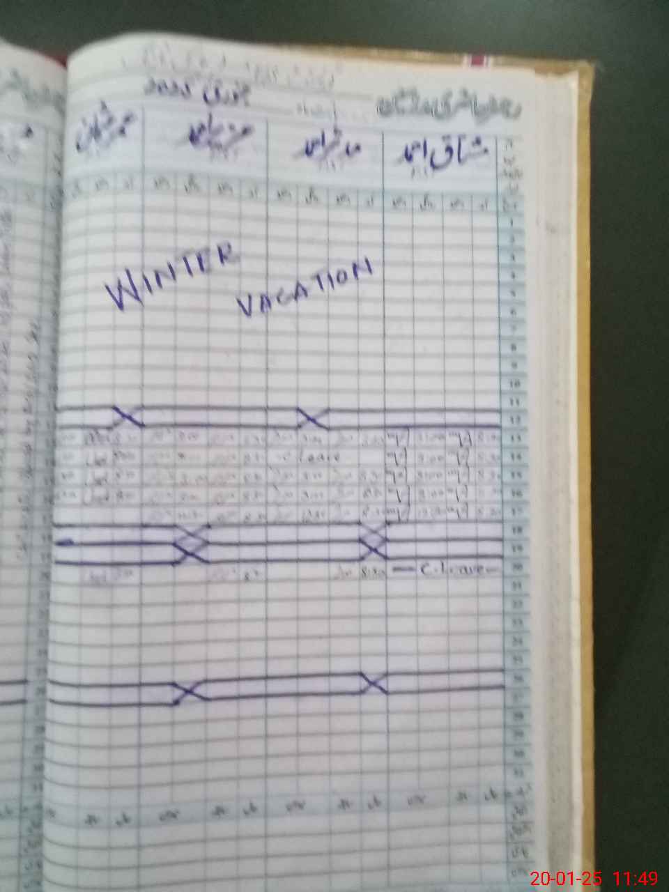 | No. of Students Present - Male | 7 | 0 | 23 | 25 | 21 | 25 | 27 | 30 | 25 | 19 | 12 | 214 | ||||